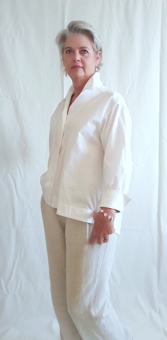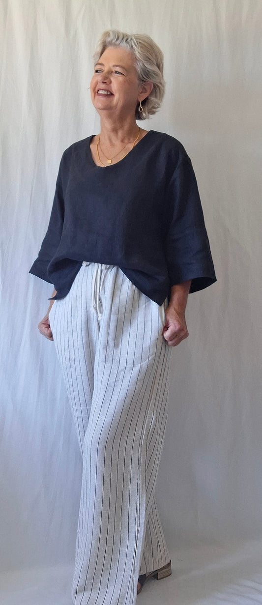 Have just received my Linen Top..and omword...a Classic..First and foremost..La Verne took the time to wrap the Top so beautifully in Tissue paper..a glorious satin bow holding all together and tags informing you what Linen fabric is all about..and how to wash it etc..As Linen is not a forgiving fabric..that is..no stretch..was concerned about sizing..so took a L ..and it is so comfy..think I might order a Med next...quality of workmanship...exceptional..so what a wonderful surprise to receive such perfection..thank you to the team at LA Verne...