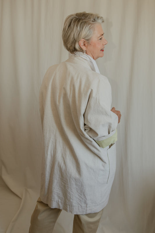 Everything about La Verne’s linen dresses says quality. The fabric is gorgeous with just the right amount of drape and flow. They are beautifully cut, finished and sewn. The style is slightly oversized creating a “relaxed” fit. I love the long sleeves because it makes the dress so versatile for a formal or casual look. Overall the dress is just wonderful.