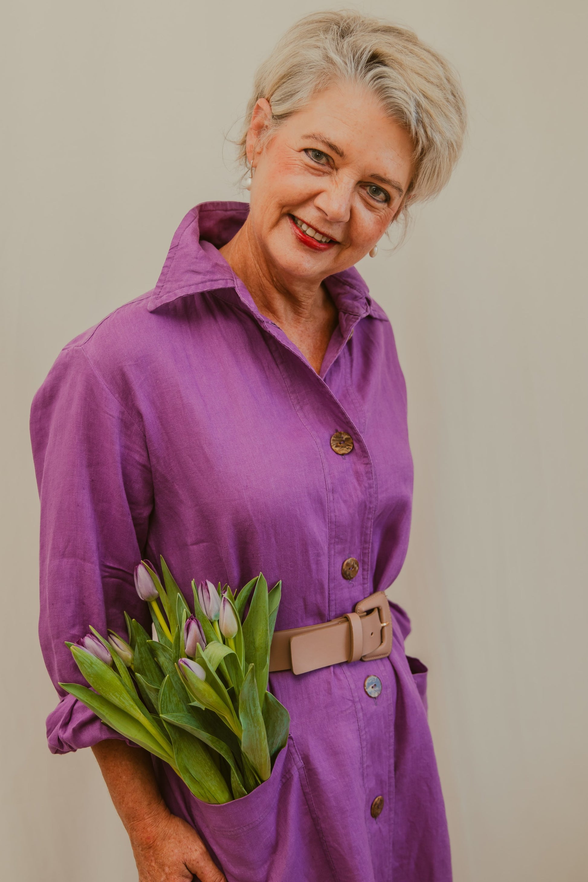 Everything about La Verne’s linen dresses says quality. The fabric is gorgeous with just the right amount of drape and flow. They are beautifully cut, finished and sewn. The style is slightly oversized creating a “relaxed” fit. I love the long sleeves because it makes the dress so versatile for a formal or casual look. Overall the dress is just wonderful.